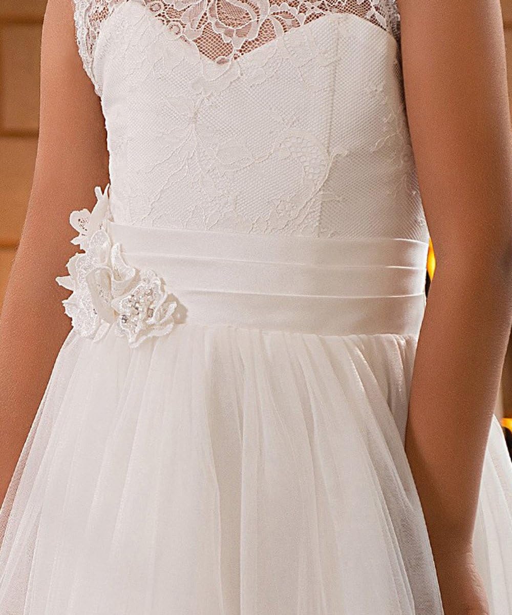 Customers find the dress beautiful and well-made, feeling like princesses while wearing it, and appreciate its perfect fit that’s not oversized. They consider it an amazing affordable option, particularly suitable for first communion and weddings. The size and length receive mixed feedback – while some say it’s true to size and the length is perfect, others find it runs small and is too long for little flower girls. The ivory color also gets mixed reviews, with some noting it’s stark white rather than the expected ivory shade.