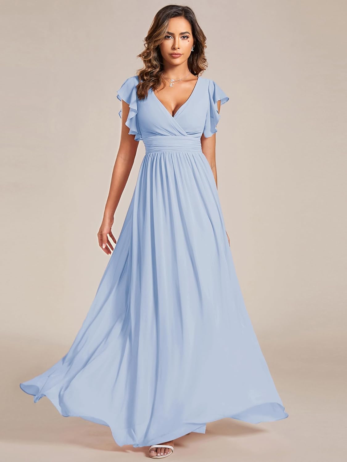 Women’s Chiffon Ruffles Sleeve Back Cutout Maxi Bridesmaid Dresses