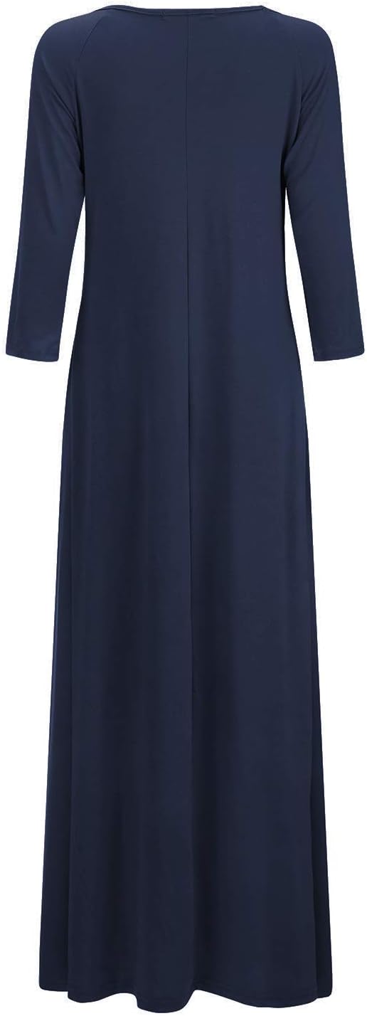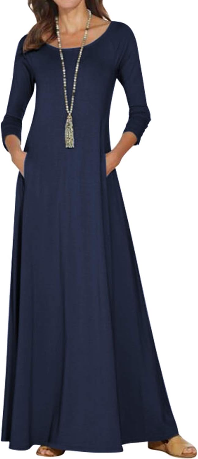 Jacansi Womens 3/4 Long Sleeve Solid Casual Fall Long Sleeve Maxi Dress with Pockets