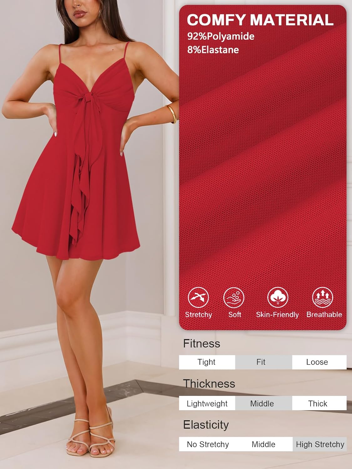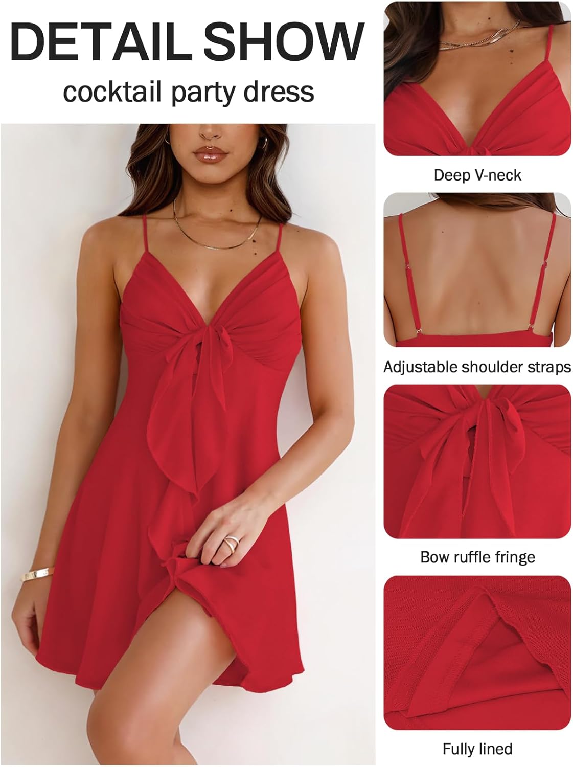 Women Sleeveless Sexy V Neck Summer Dress for Women Casual Flowy Beach Club Party Spaghetti Strap Mini Sundress