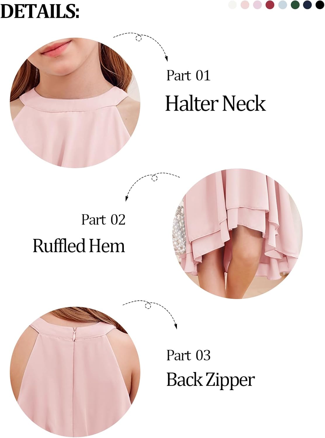 CHIFFON JUNIOR BRIDESMAID DRESS: Sweeten all of her occasions in this ruffle dress styled with soft texture and flowy hem, such as Casual, Beach, Outfits, Park, Party, School, Home, Holiday, Outdoors etc. It also suitable for for sping, summer or fall.