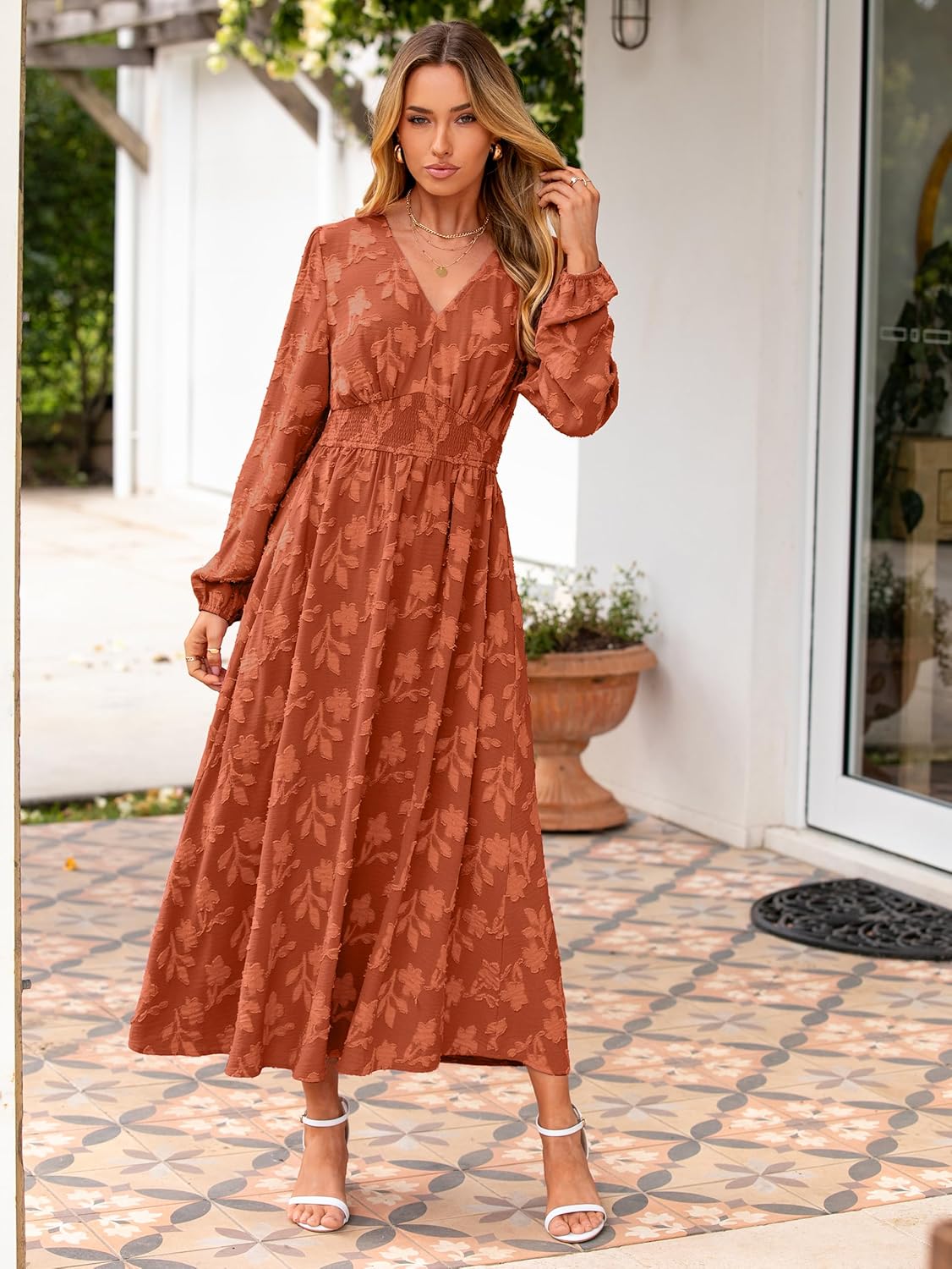 Fall Wedding Guest Dress Long Sleeve Maxi Dresses