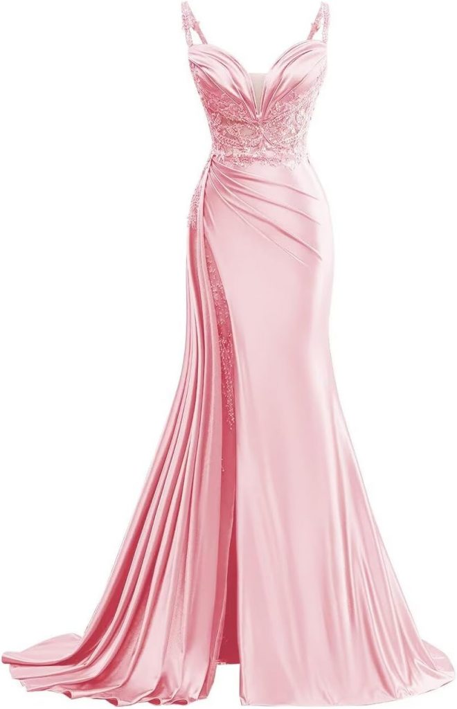 Product description V Neck Satin Prom Dresses for Women 2025 Lace Beaded Prom Dresses Long