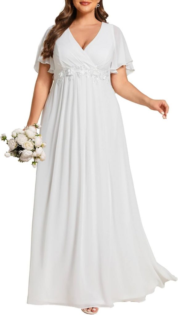 Ever-Pretty Chiffon V Neck Short Sleeves Appliques Plus Size Formal Dresses for Curvy Women Evening Gowns 01960-DA