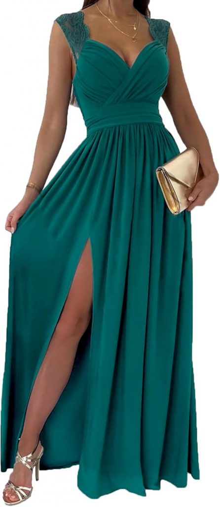 Product description Dokotooo Summer Wedding Guest Maxi Dress Dokotoo V-Neck Lace Empire Waist Formal Dress
